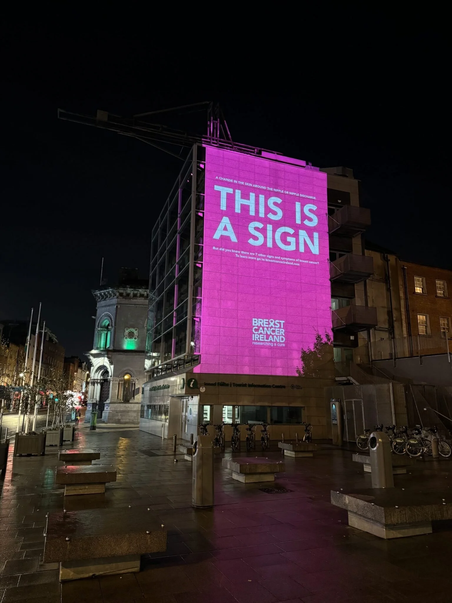 Landmark Visibility: A gigantic 52‑ft pink projection in Dublin’s city centre spotlighted each sign dramatically.